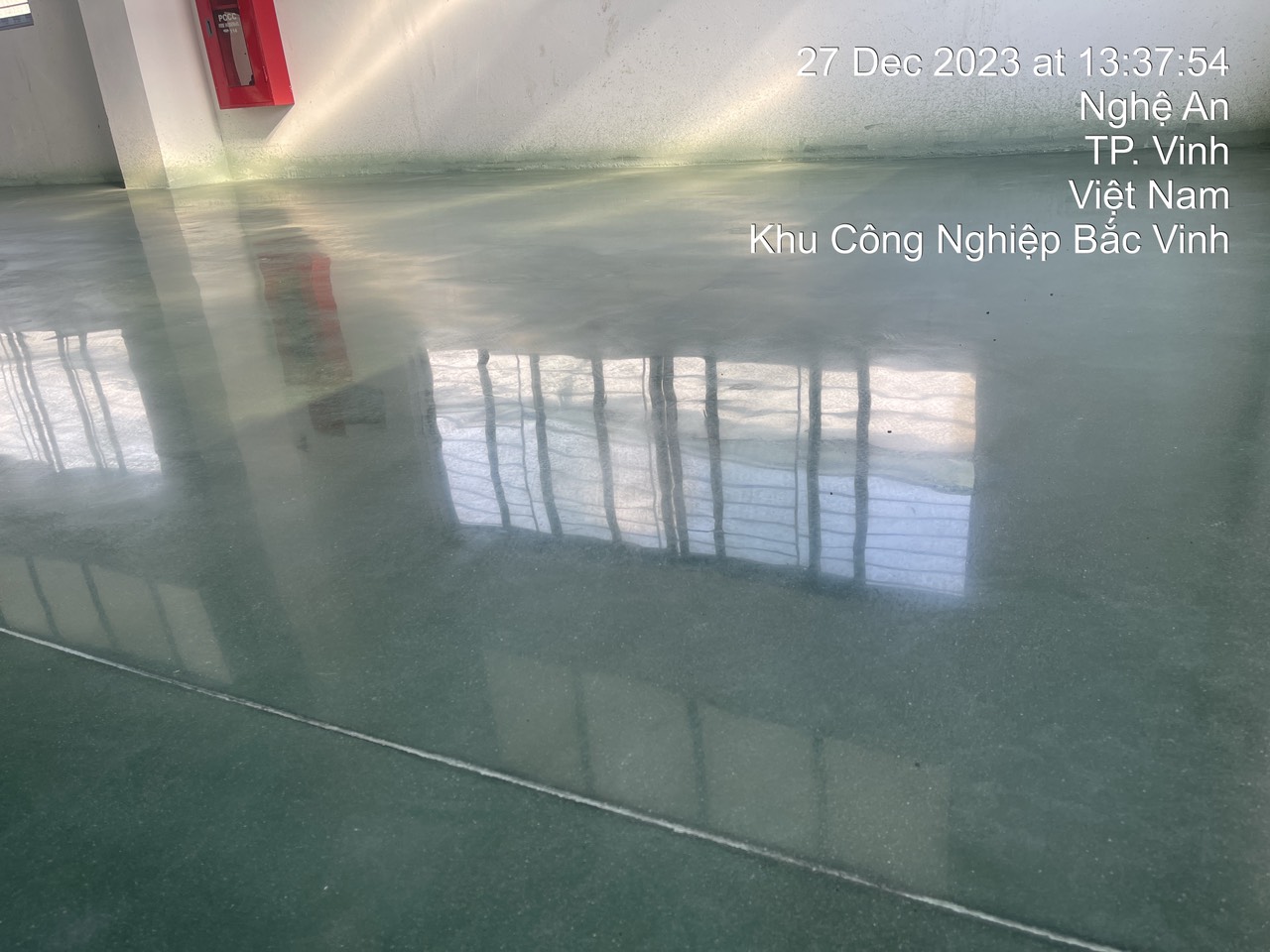 *Bước 3: Phun liquid tăng cứng lên bề mặt bằng sản phẩm Decosil (Châu Âu) không pha loãng, để phụ gia tác dụng với sàn khoảng 24h.